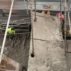Im Rahmen von Umbauarbeiten an einem Stahlbetonbunker in Münster, NRW, führten wir den Rückbau des Gebäudes unter Verwendung von Wandsägen und Seilsägen durch. Dabei wurden großformatige Stahlbetonteile präzise geschnitten, demontiert und fachgerecht abtransportiert. Die Arbeiten umfassten sowohl das Betonsägen als auch den Rückbau von Stahlbetonstrukturen, um den Umbau effizient und sicher zu gestalten.
