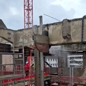 Im künftigen Haus des Wissens in Bochum führten wir die Entkernung des Gebäudes durch, wobei nur die Außenwände erhalten blieben. Dies umfasste Bohr- und Sägearbeiten in Stahlbeton und Mauerwerk, die Demontage von Stahlbetonbindern sowie die Entsorgung sämtlicher Materialien.