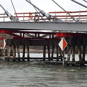 Betonsägen mit Seilsägen an einem Brückenpfeilen
