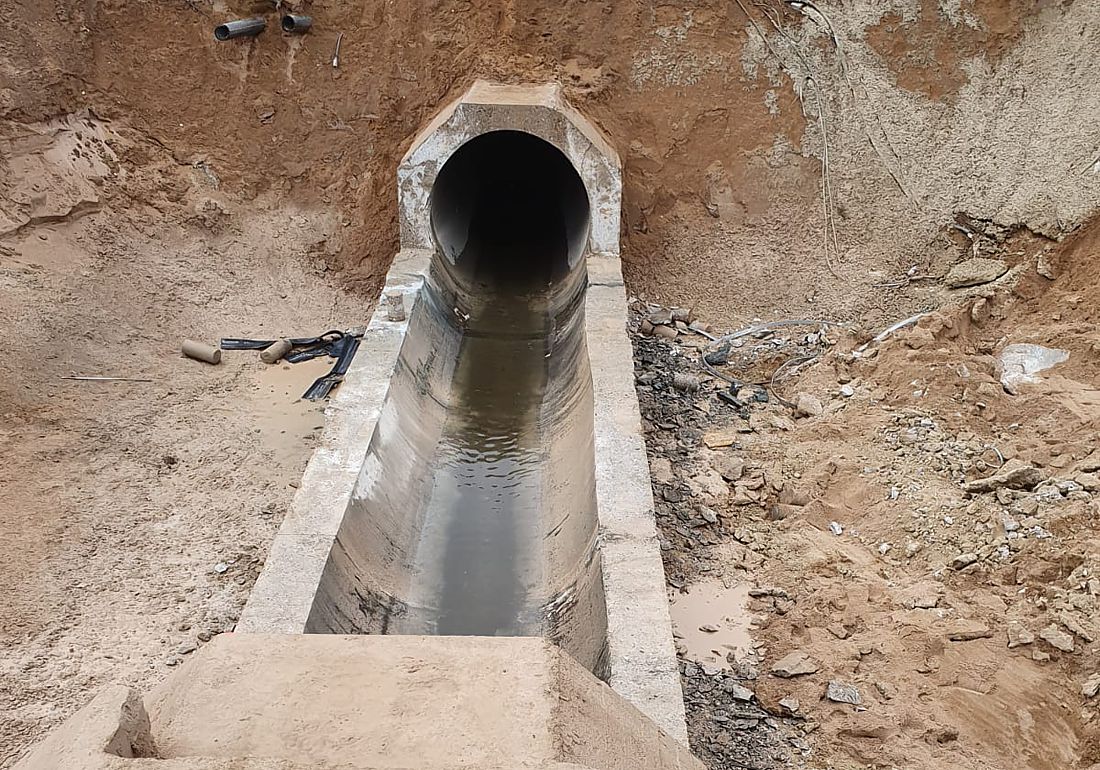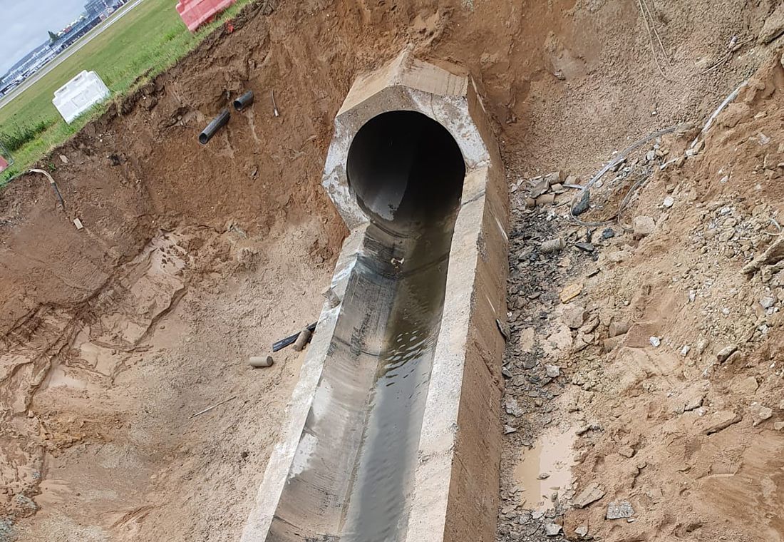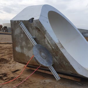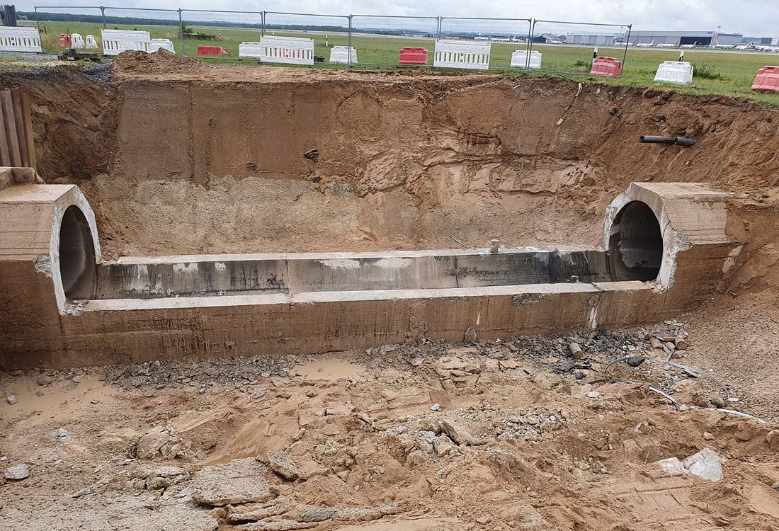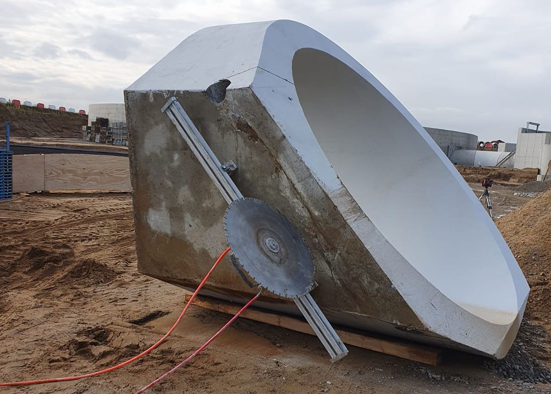 Betonsägen bzw. Abbrucharbeiten am Flughafen Düsseldorf. Teilabbruch von Stahlbetonrohren mittels Wand- und Seilsäge