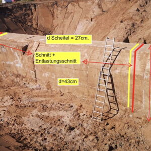 Für einen Supermarkt in Herten mussten den Stahlbetonfertigteile Bohrungen mit einem Durchmesser von 85 cm ausgeführt werden. Die Bohrkerne wurden abtransportiert und fachgerecht entsorgt.
