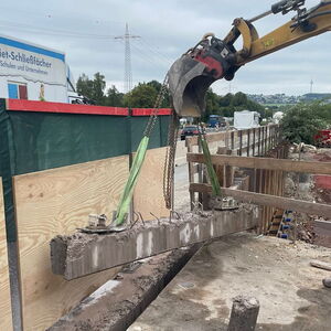 An einer Bahntrasse der Deutschen Bahn wurde mittels Seilsäge ein Stahlbetonbauwerk 2,50 m tief für eine Wort Durchleitung aufgeschnitten.