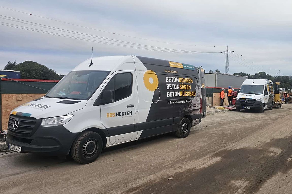 Für einen Supermarkt in Herten mussten den Stahlbetonfertigteile Bohrungen mit einem Durchmesser von 85 cm ausgeführt werden. Die Bohrkerne wurden abtransportiert und fachgerecht entsorgt.