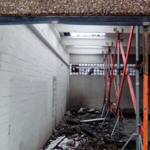 Bei der Firme Ritter Starkstromtechnik in Dortmund musste für die Demontage eines Gebäudeteils ein Verbindungstrakt aus Stahlbeton zersägt, erschütterungsfrei komplett zurückgebaut und entsorgt werden.