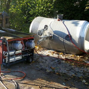 Durchtrennen von Stahlbetonabwasserrohren mittels Seilsägen.