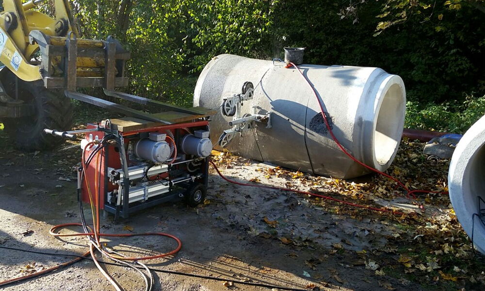 Betonsägen Kanalrohr bei Köln NRW mittels Seilsäge
