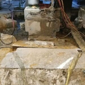 In einer Raffinerie in Gelsenkirchen haben wir massive Stahlbetonfundamente von Verdichteralagen mittels Wandsägeverfahren und Seilsägeverfahren (horizontale und vertikale Schnitte) ausgeführt. Hier kam eine Hilti - Ständerseilsäge zum Einsatz, mit der die Trennschnitte durchgeführt wurden. Die Fundamente wurden dann weiter mittels Wandsäge in transportable Stücke zersägt und entsorgt.