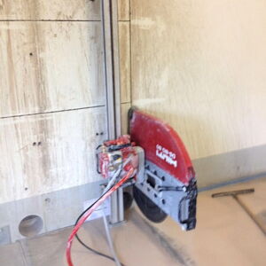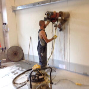 In einem Gewerbebetrieb in Wuppertal wurde mittels Kernbohrungen und Wandsägen ein Wanddurchbruch in einer Stahlbetonwand zum Einbau einer Verbindungstür hergestellt.