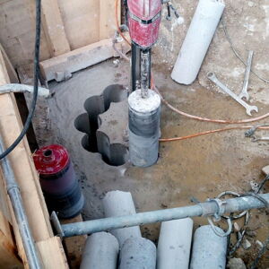 Für einen Supermarkt in Herten mussten den Stahlbetonfertigteile Bohrungen mit einem Durchmesser von 85 cm ausgeführt werden. Die Bohrkerne wurden abtransportiert und fachgerecht entsorgt.