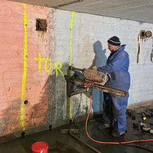 In der Uniklinik Münster haben wir mittels Kernbohrungen und Wandsägen eine wandöffnung in einer Stahlbetonwand mit 40 Zentimeter Dicke hergestellt