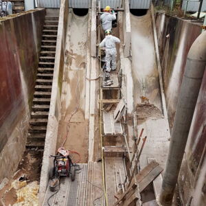Präzise Schrägschnitte an Kanalrohren DN 1800 mit moderner Seilsägetechnik.
