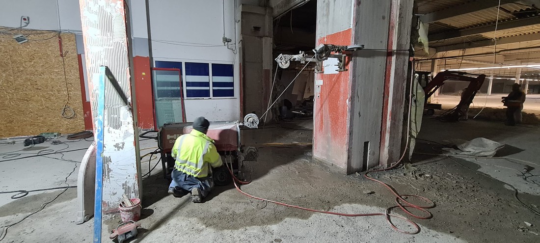 Erstellung einer Wandöffnung in Stahlbeton mittels Betonbohren und Betonsägen