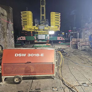 In Neuss im Ruhrgebiet  wurden Oberleitungsmasten aus Stahlbeton ebenerdig mittels Wandsäge abgeschnitten.