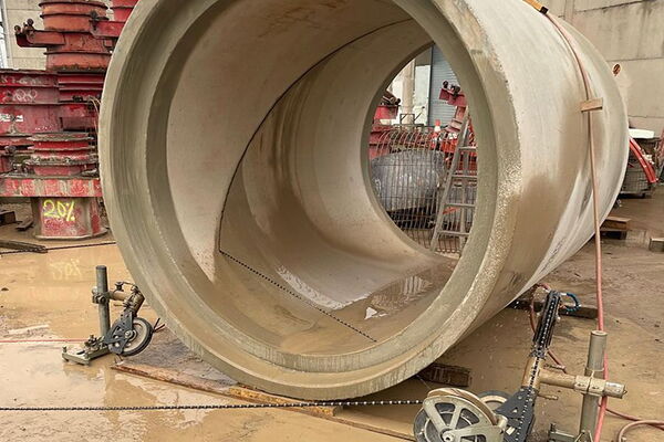 Präzise Schrägschnitte an Kanalrohren DN 1800 mit moderner Seilsägetechnik.