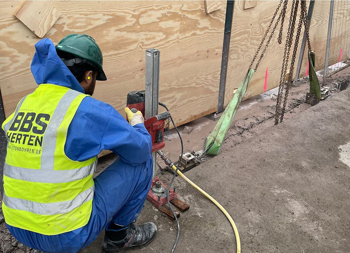 In der Uniklinik Münster haben wir mittels Kernbohrungen und Wandsägen eine wandöffnung in einer Stahlbetonwand mit 40 Zentimeter Dicke hergestellt