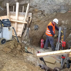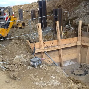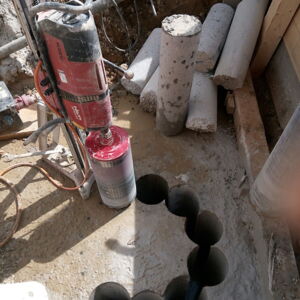 Für einen Supermarkt in Herten mussten den Stahlbetonfertigteile Bohrungen mit einem Durchmesser von 85 cm ausgeführt werden. Die Bohrkerne wurden abtransportiert und fachgerecht entsorgt.